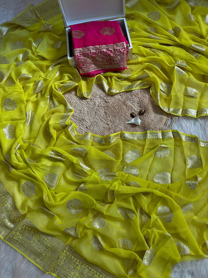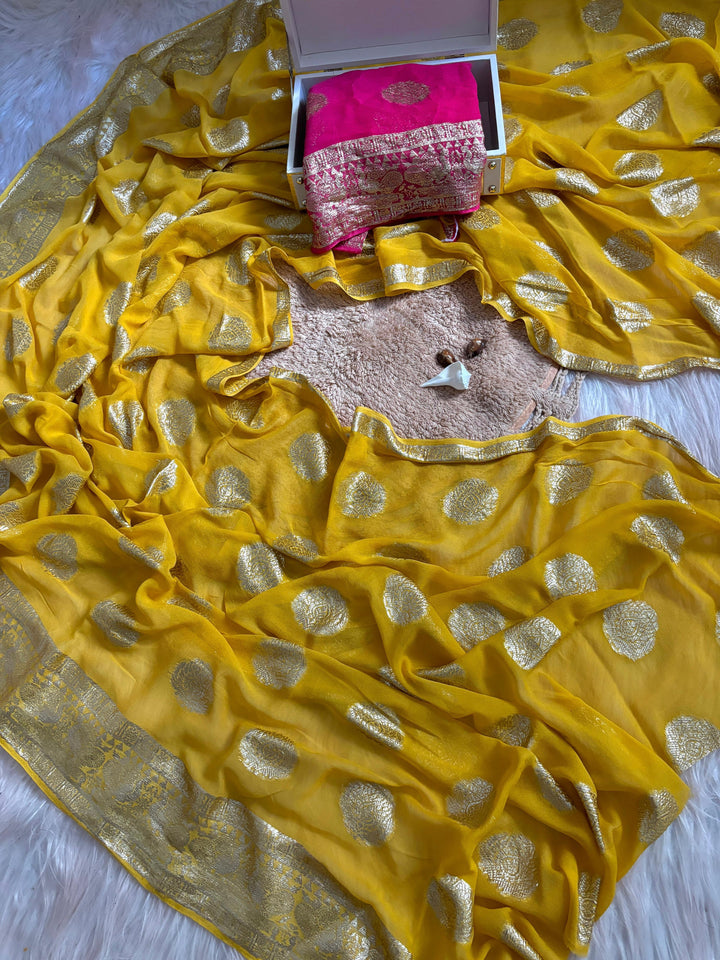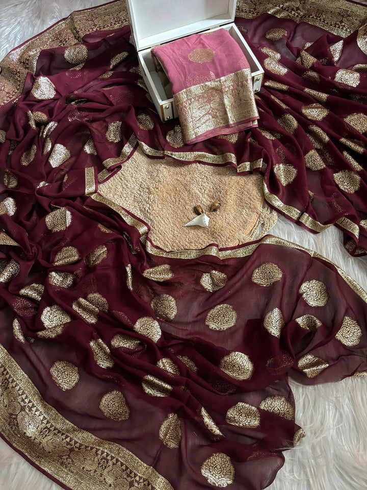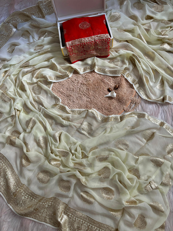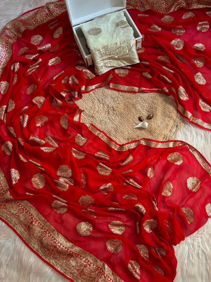 Soft Viscose Georgette Saree | Banarasi Weave | Wedding Ready to Wear